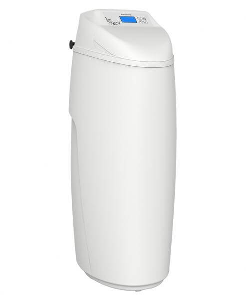 Не требует использования сменных картриджей: для регенерации достаточно открыть верхнюю крышку на корпусе и засыпать необходимое количество соли.